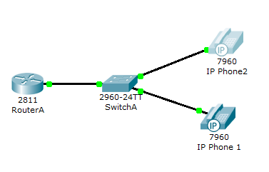 Meskipun 'IP Phone 1' sudah terhubung ke SwitchA, perlu konfigurasi tambahan sebelum dapat berkomunikasi. Anda perlu mengkonfigurasi RouterA CME untuk menetapkan nomor telepon ke telepon IP ini.